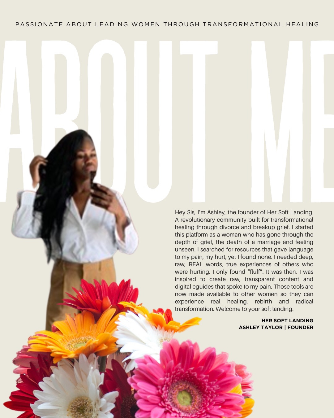 The depth of that reality broke me. The only way out was through. That’s the part NOONE talks about. It was in my grief I birthed Her Soft Landing. This community has become a saving grace for other hurting women going through divorce and breakups. Utilizing the same tools, cheat sheets and guides I created for myself are now made available in collections for others to use. I’m honored the feedback has been incredible!